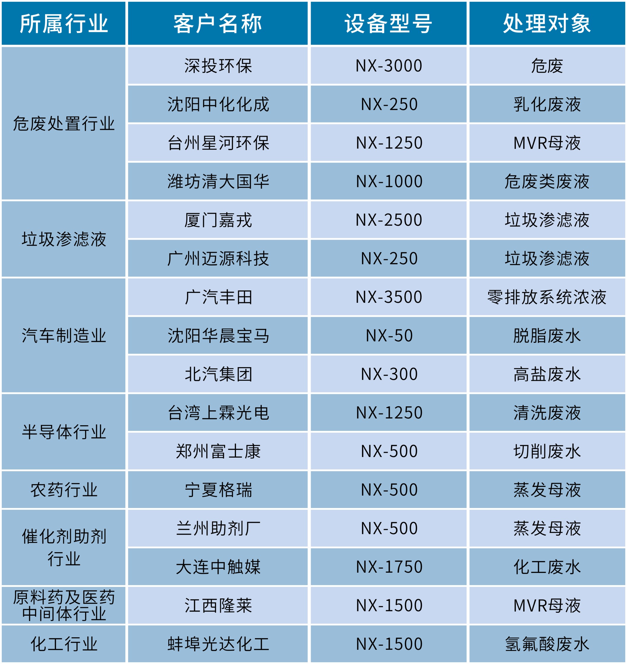 國內超過120個案例,涵蓋多個行業(yè),包括危廢處置行業(yè)、化工行業(yè)、醫(yī)藥行業(yè)、汽車制造行業(yè)、垃圾滲濾液處理等等